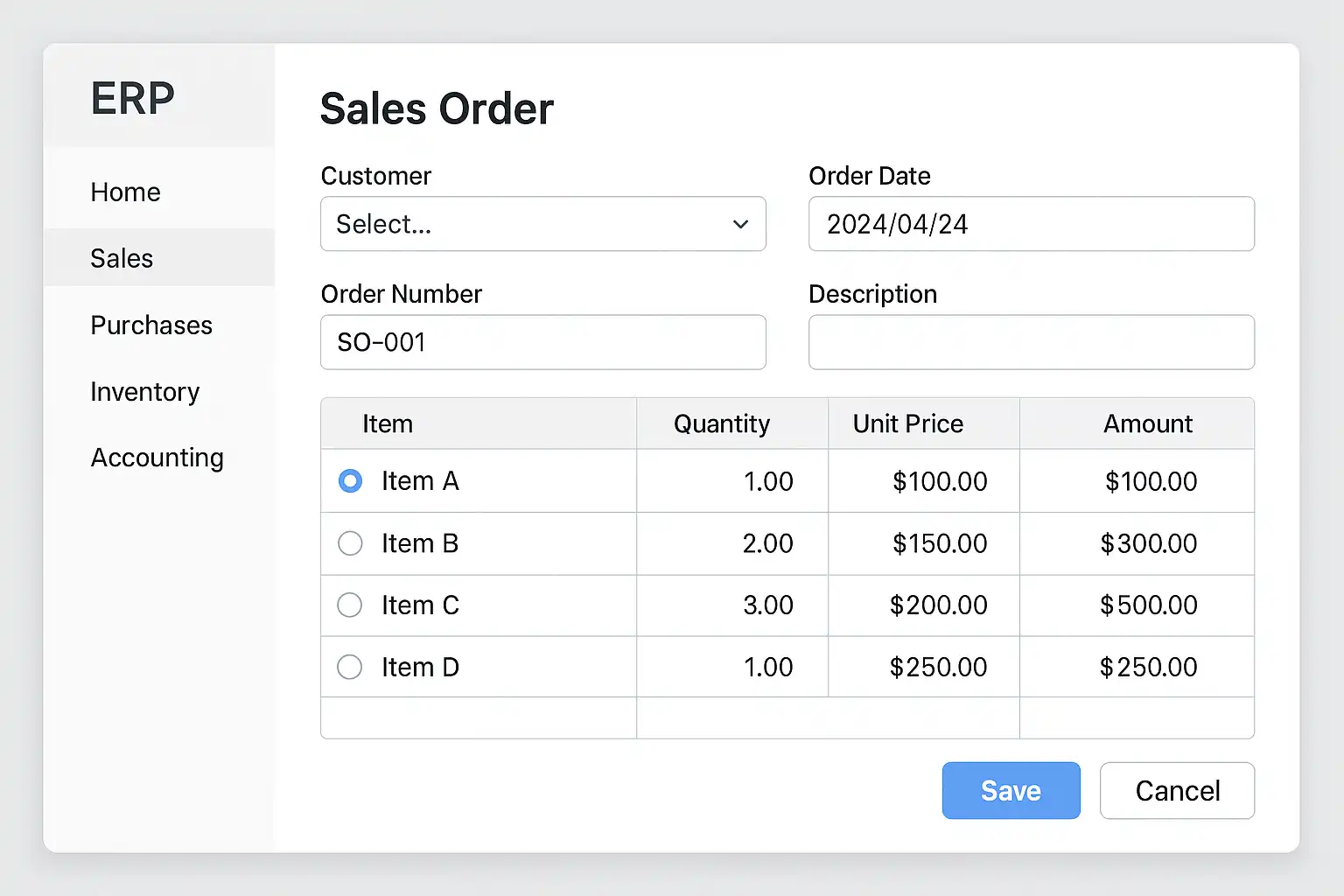 - ERP自动生成销售订单号,与库存模块联动扣减原材料存量。