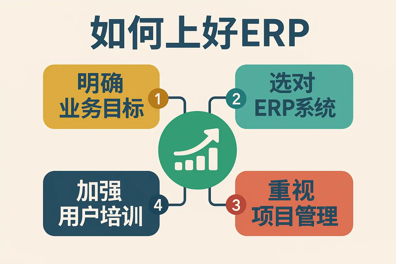 - 分层次培训——针对不同岗位设计个性化课程,例如财务、采购、生产模块分别训练;