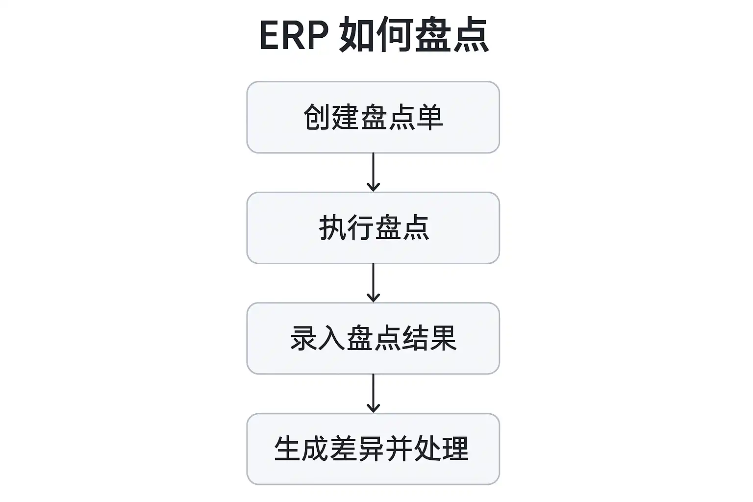 | 3. 下发盘点单 | ERP系统自动生成并分发各仓库或部门的盘点任务 |