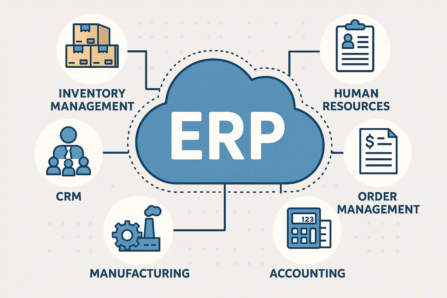 ERP(Enterprise Resource Planning,企业资源计划)是一套以管理思想为基础,将先进的信息技术与业务流程相结合的综合性管理平台。其核心在于将企业内部各类资源(如人力、财务、生产等)进行统一规划,实现信息共享和过程协同。