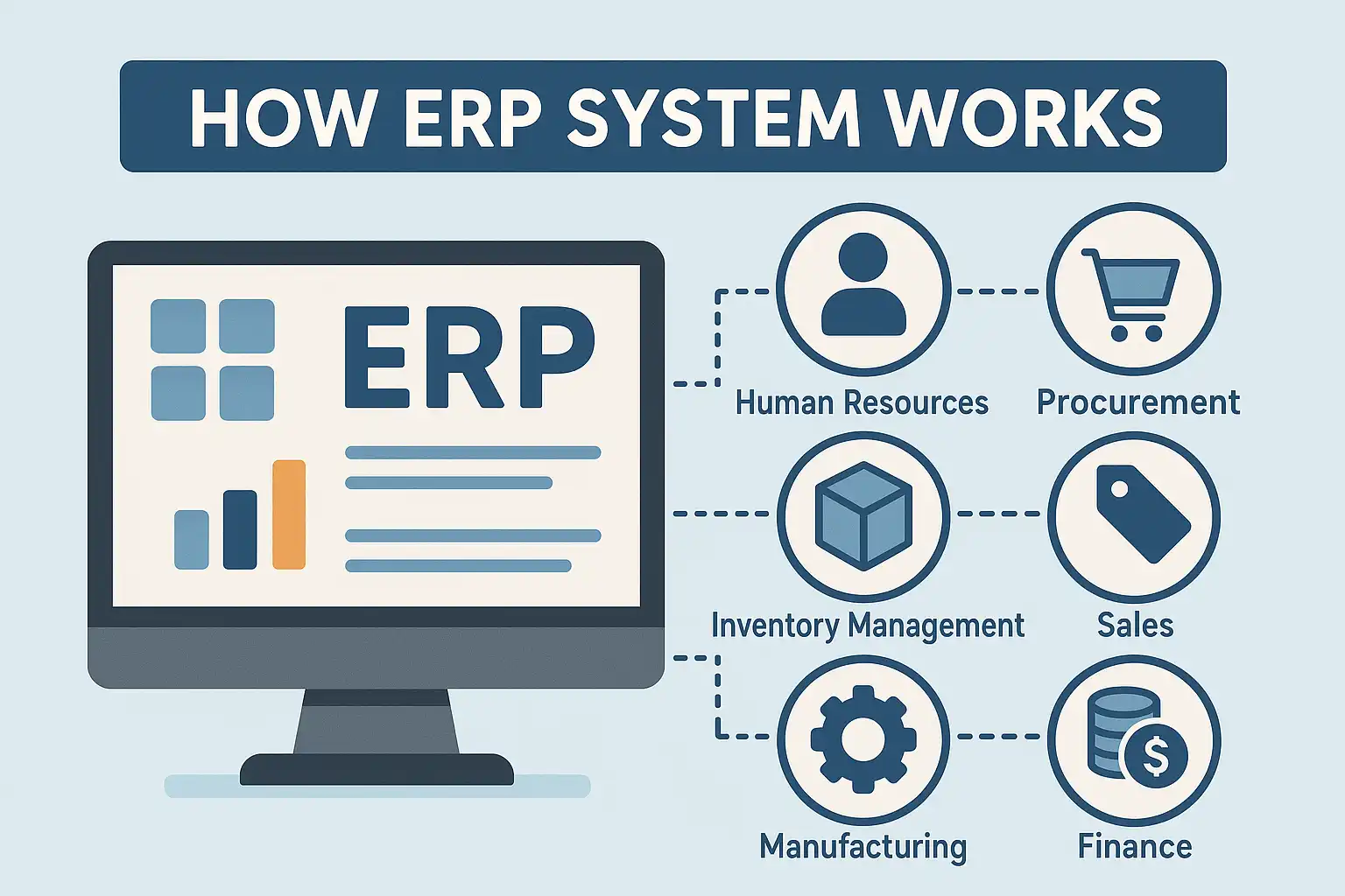 ERP(Enterprise Resource Planning,企业资源计划)是一种帮助企业整合和优化内部管理流程的软件平台。其核心原理在于: