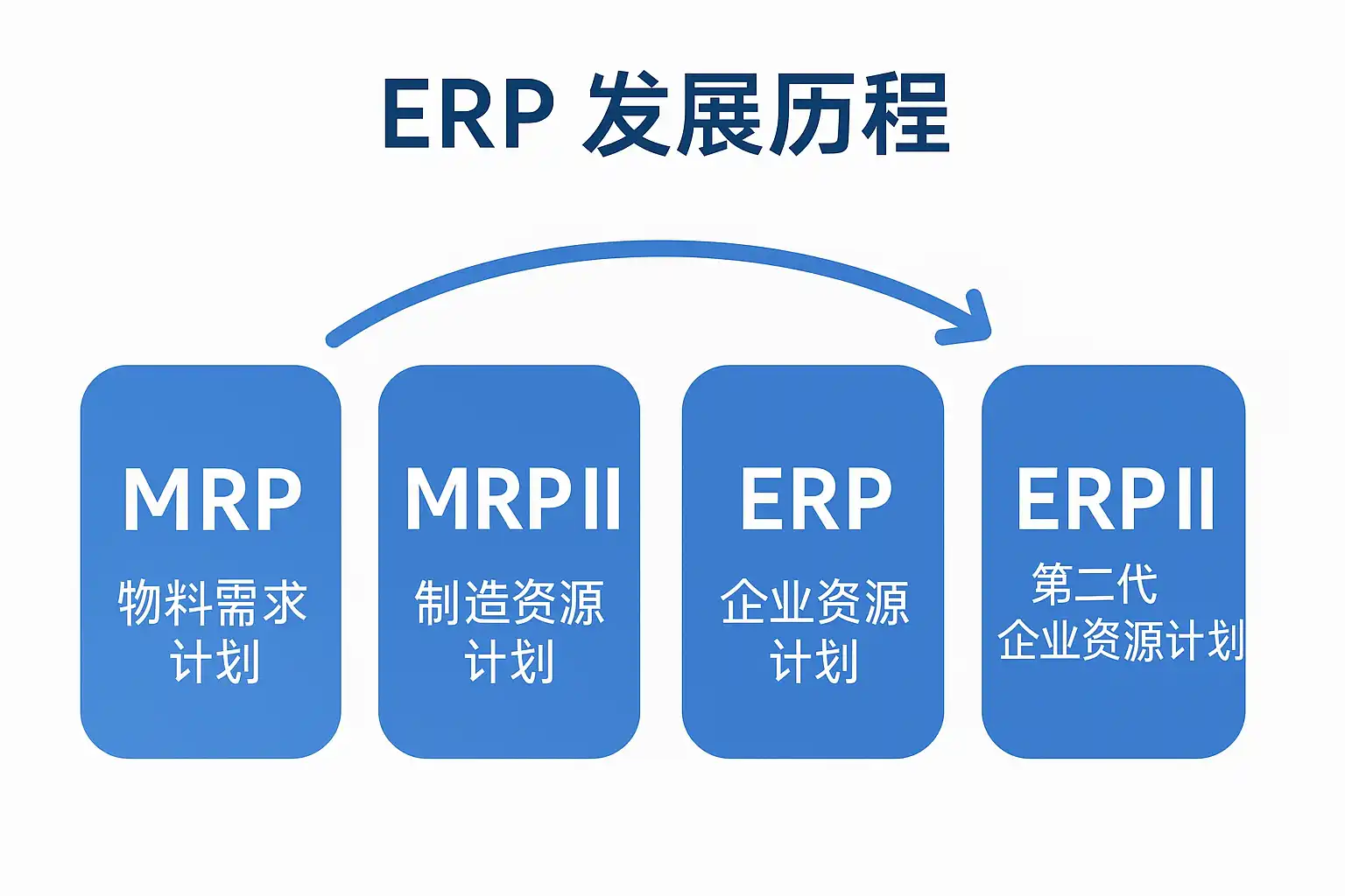 | MRP II(制造资源计划) | 1980s | 拓展到生产、人力、财务等多部门协同 | 大中型制造企业 |