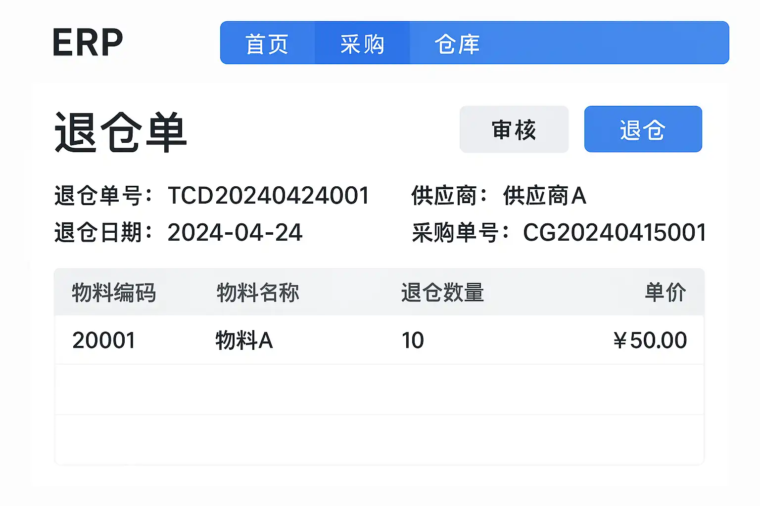 这些场景均需通过正规流程在ERP系统内创建“退仓单”,确保账实一致,为后续业务分析和决策提供数据依据。