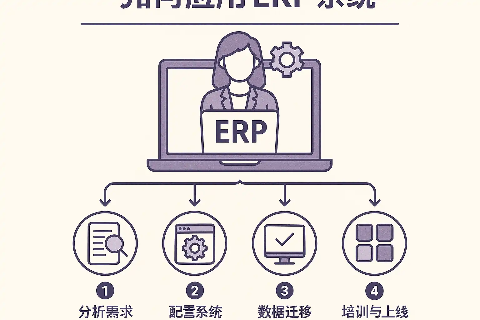 ERP系统应用的核心步骤主要包括需求分析、系统选型、数据迁移、员工培训和上线运行。具体步骤如下: