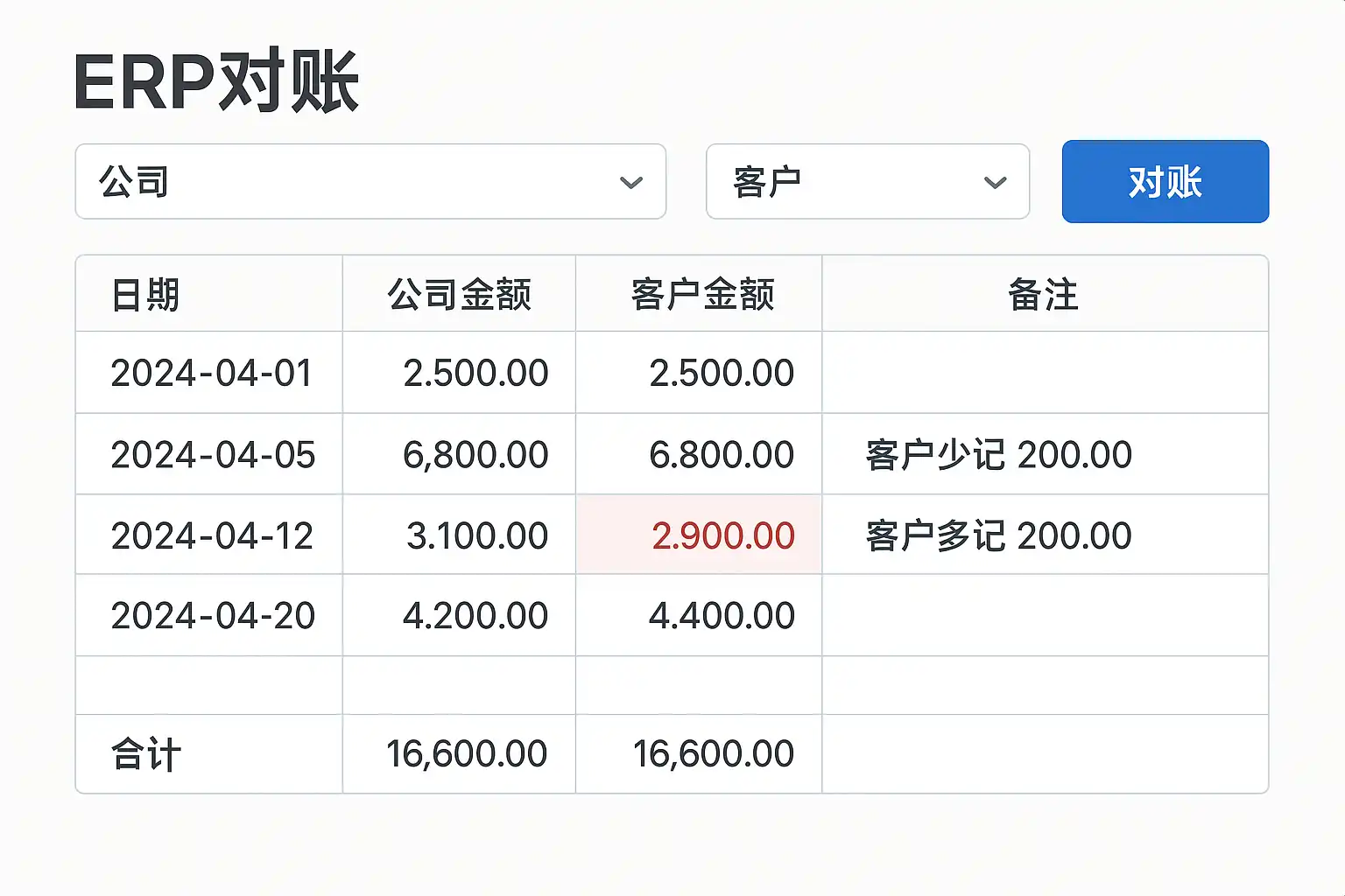 实际业务中,对账场景复杂多样。以下列举几种典型情形及其在简道云ERP中的操作方式: