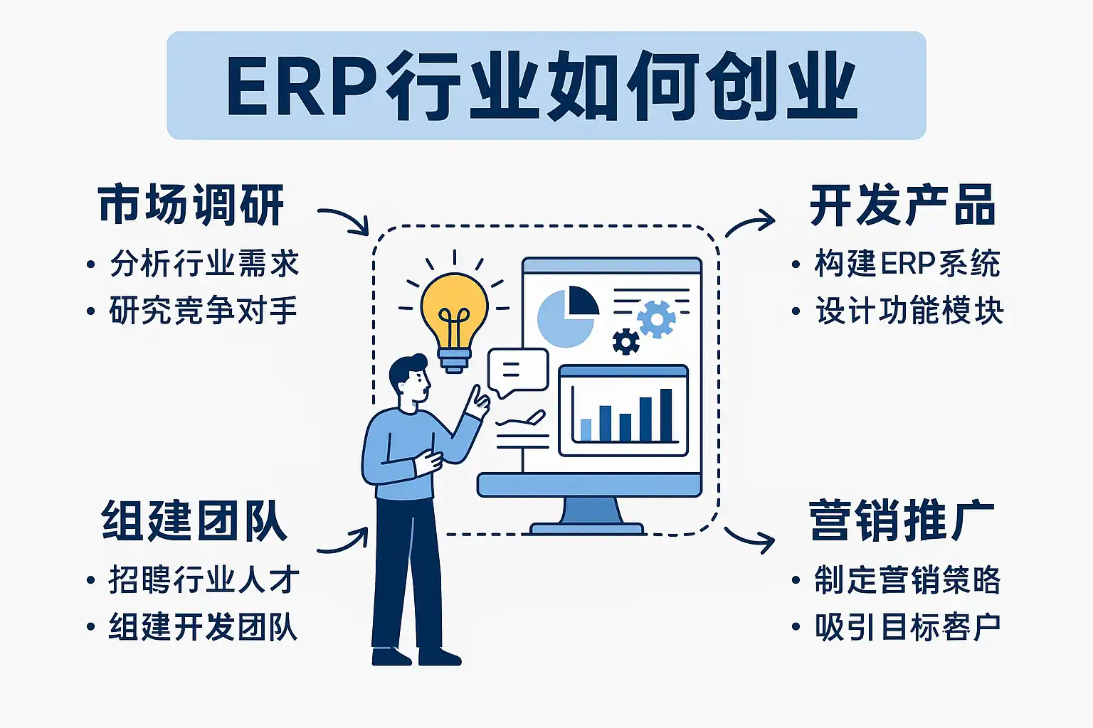 ERP(企业资源计划)系统作为企业数字化转型的重要载体,在各行各业都有广泛应用。想要在该行业创业,需要清晰规划以下几个关键步骤: