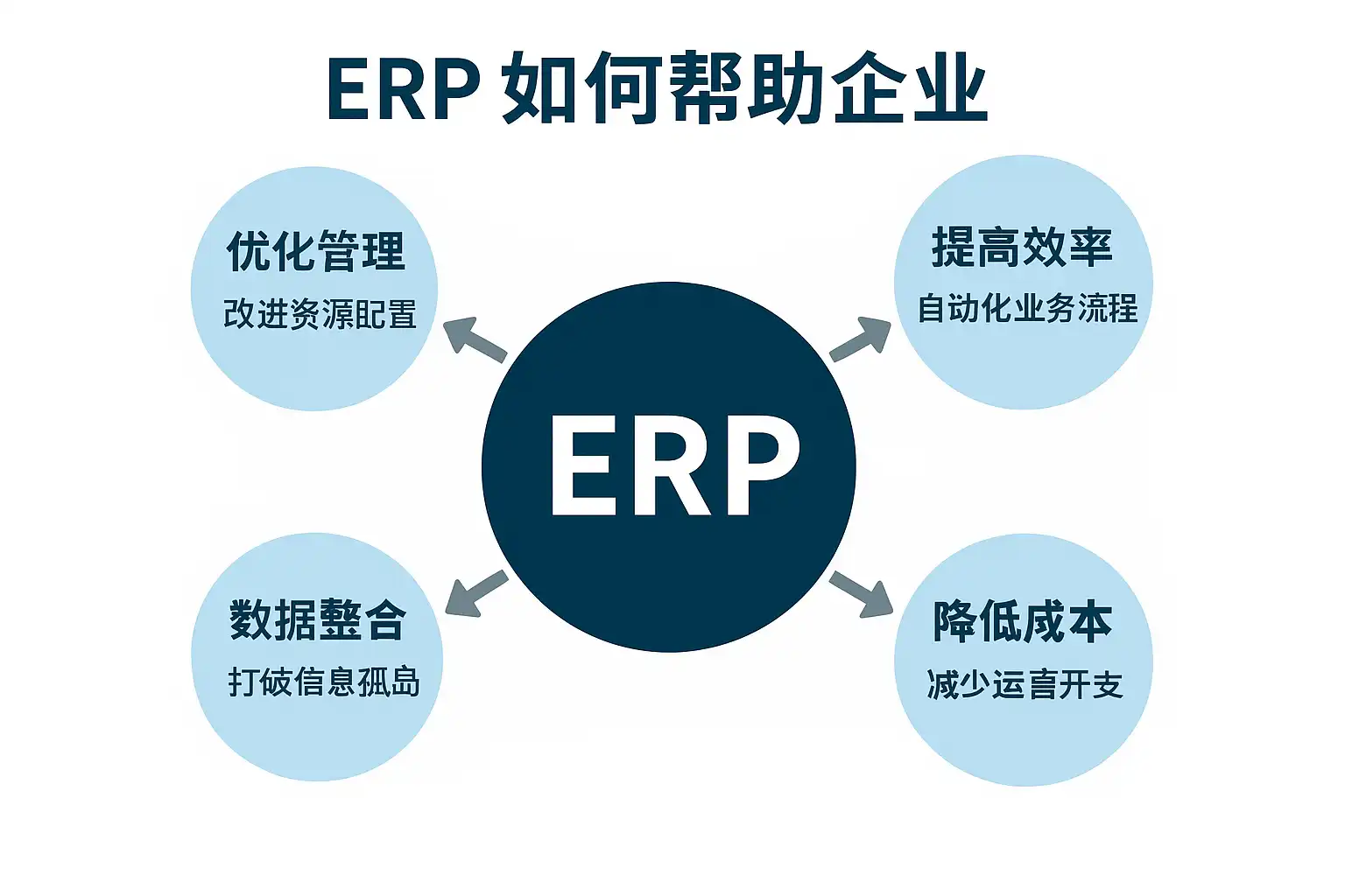 ERP(Enterprise Resource Planning)系统,是集成化的管理信息平台,贯穿采购、生产、销售、人力资源、财务等多业务领域,为企业提供统一的数据支撑和流程管控。其主要作用体现在以下几个方面: