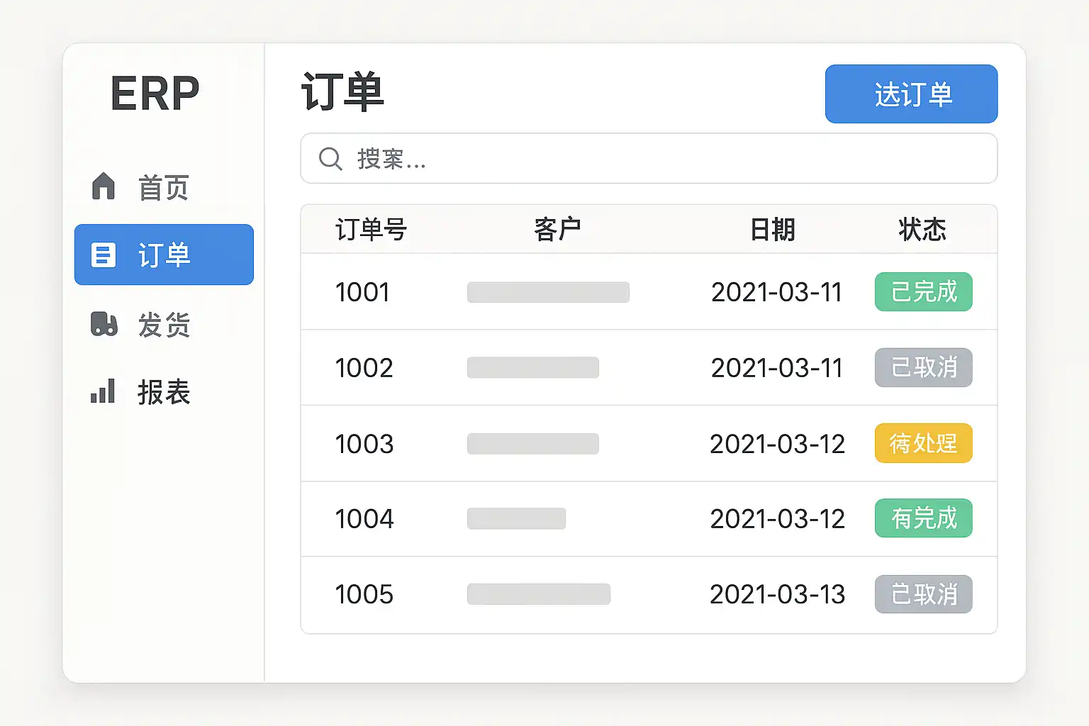 | 4. 设置条件 | 在搜索栏输入客户名/日期/状态等任意维度 |