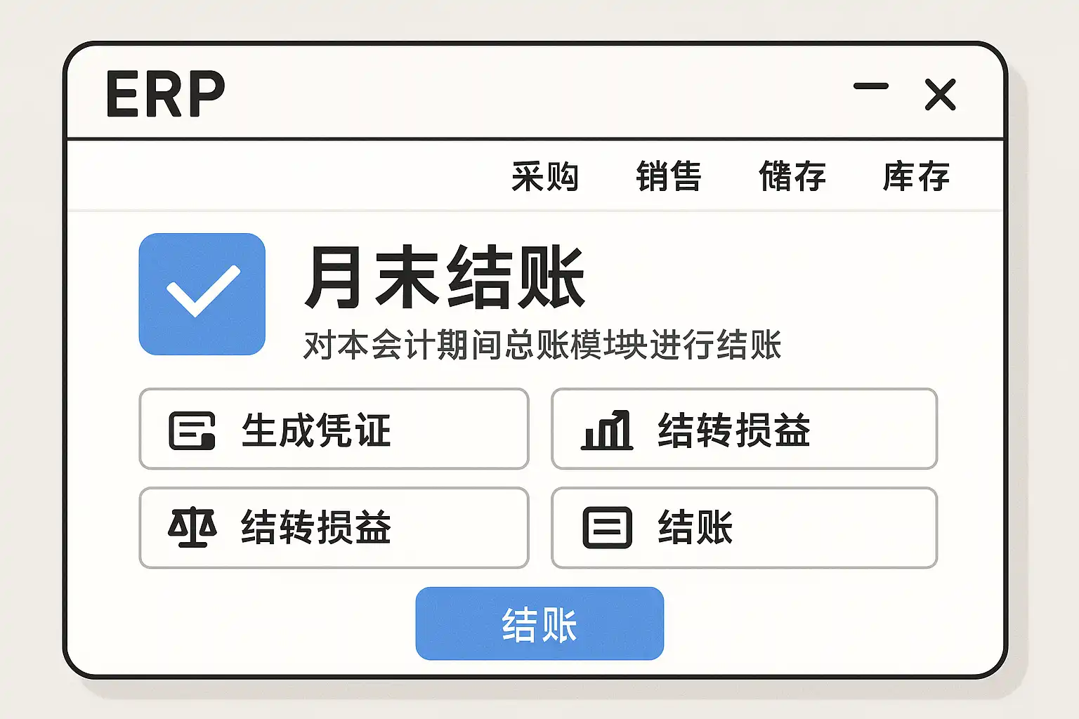 | 扎帐执行 | 锁定当期所有业务,禁止修改 | 防止事后篡改,保证会计信息安全 |