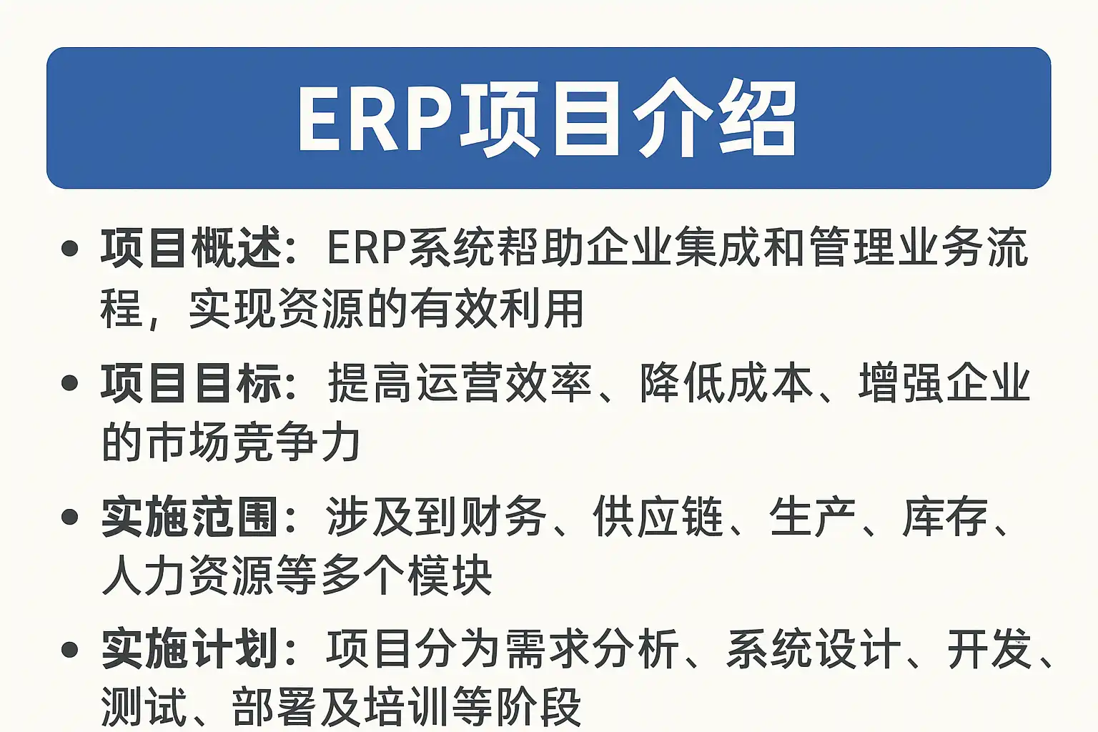 在向内部团队或外部客户介绍ERP项目时,应围绕以下几个要素展开: