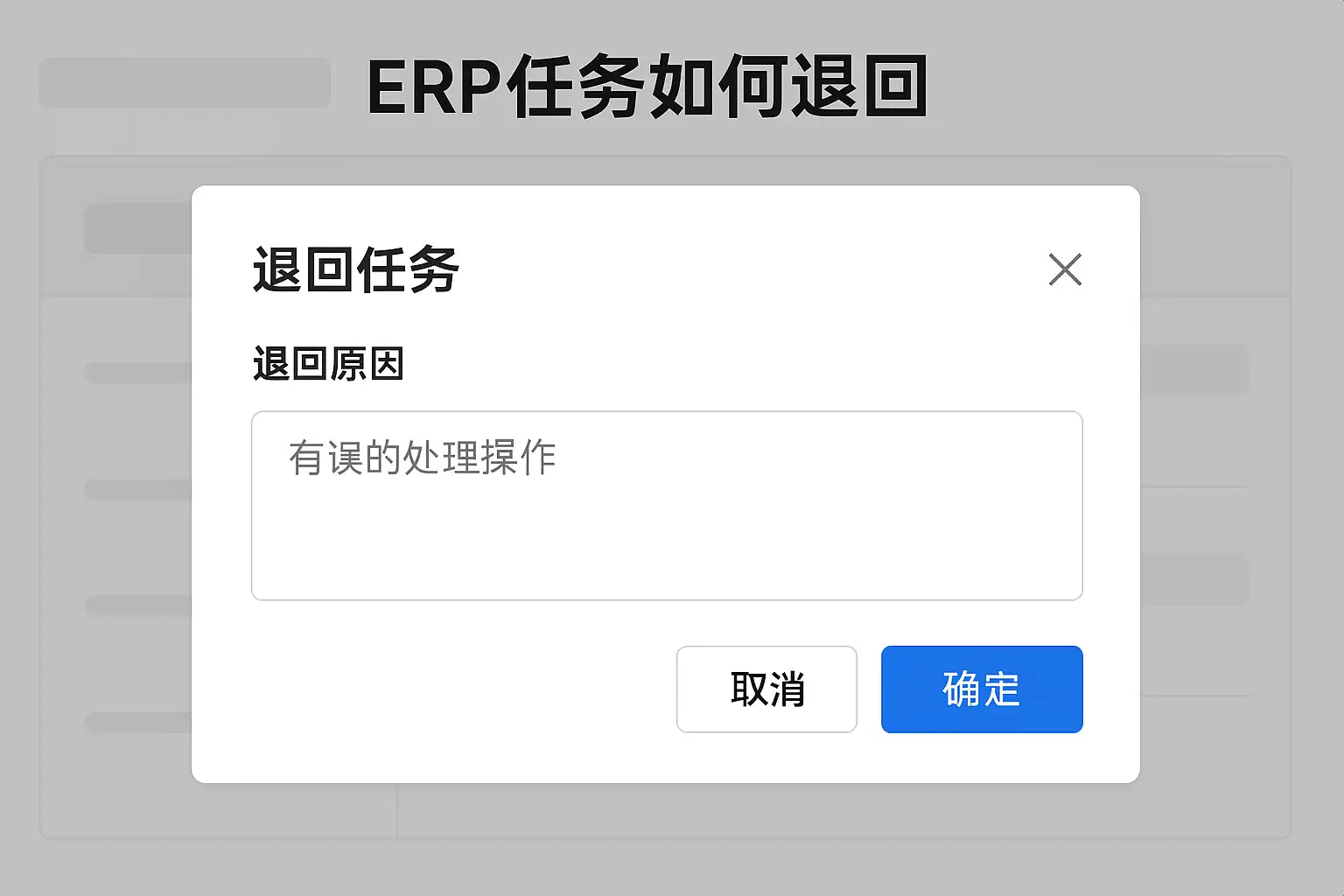定义 ERP(企业资源计划)系统中的“任务退回”,即在业务流转过程中,当发现某一环节存在错误、不完整信息或需补充资料时,将当前处理状态返回到前一个或指定节点,由原责任人再次处理。这是确保业务信息准确性和完整性的关键机制。