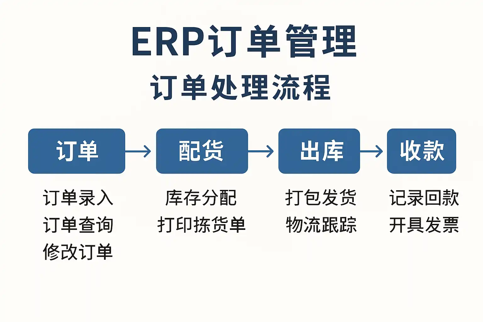 ERP系统中的订单管理通常包含如下核心环节,每一步都直接影响到企业运营效率和客户体验: