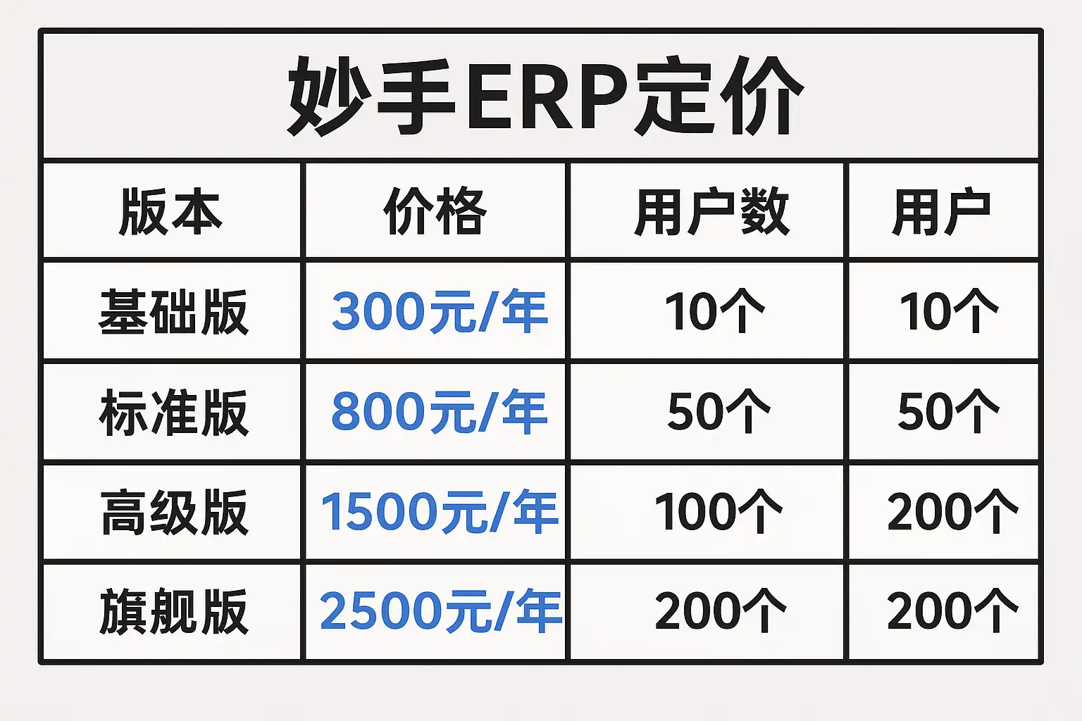 妙手ERP的定价主要受以下几个因素影响:
