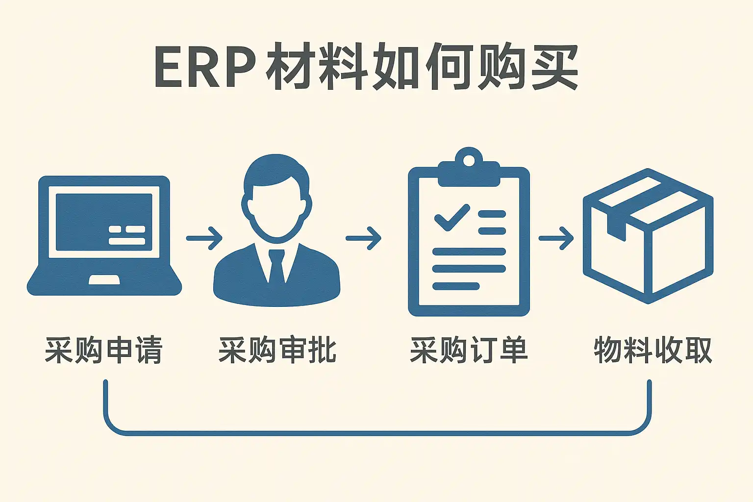 ERP(企业资源计划)系统将材料采购流程数字化,实现从需求到入库的全过程管控。其主要步骤如下: