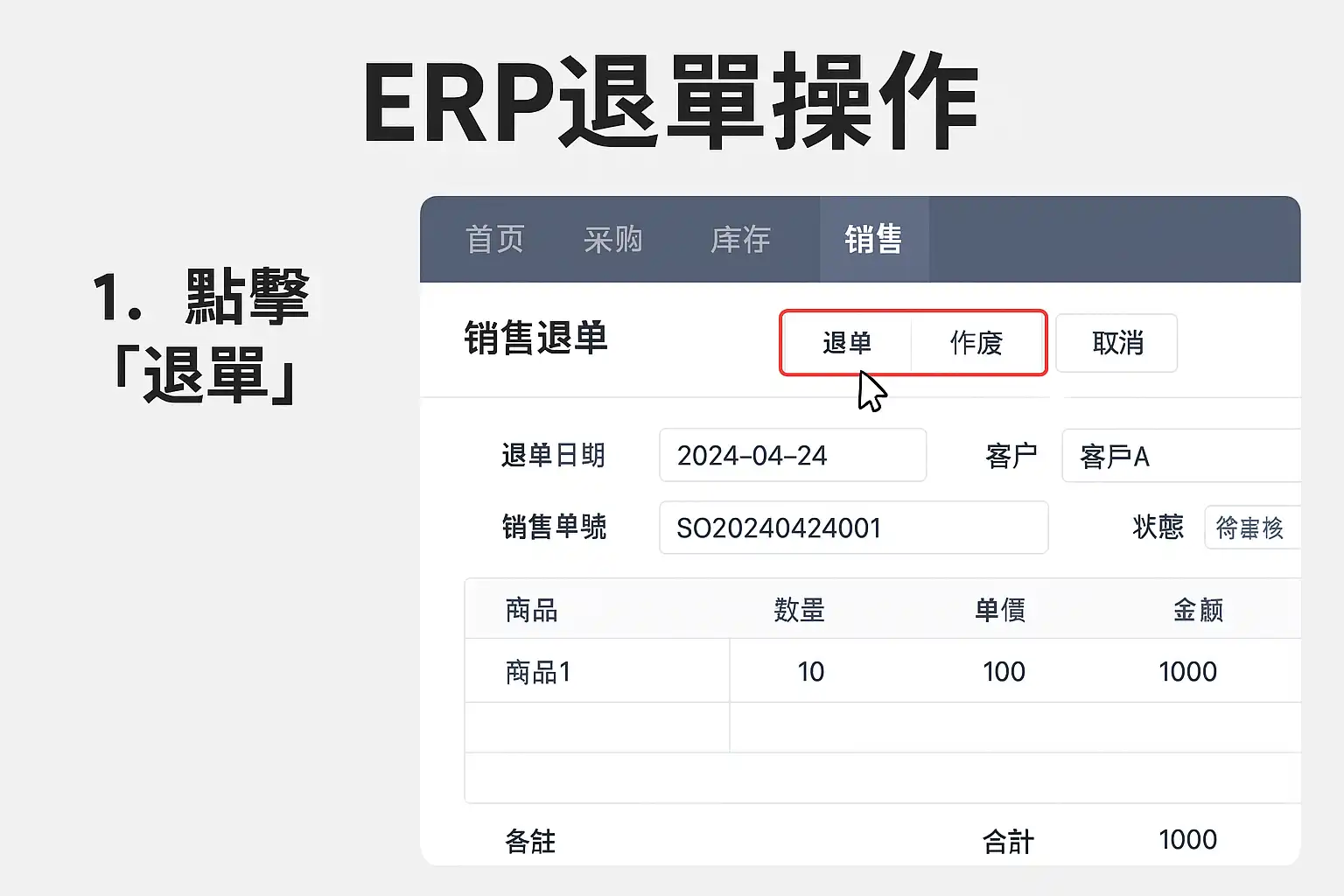 三、详细步骤:以简道云ERP为例演示标准退单全流程
