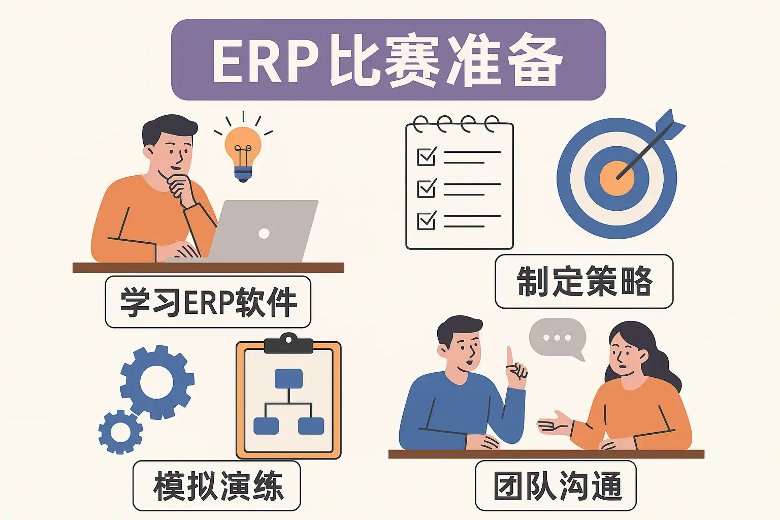 - 参加团队讨论或培训,增强协作与问题解决能力。 根据2023年ERP竞赛数据,系统复习与模拟练习结合的团队胜率提升了30%。