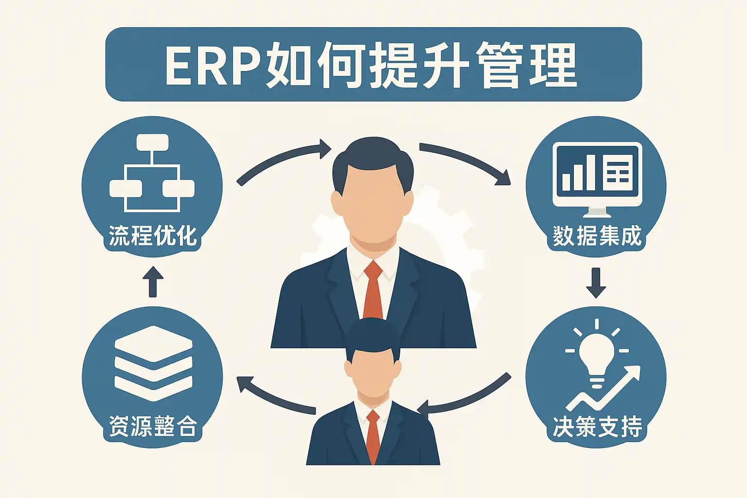 ERP(Enterprise Resource Planning,企业资源计划)通过整合企业各个部门的数据,实现信息共享和流程自动化,从而大幅提升管理效率。具体表现为: