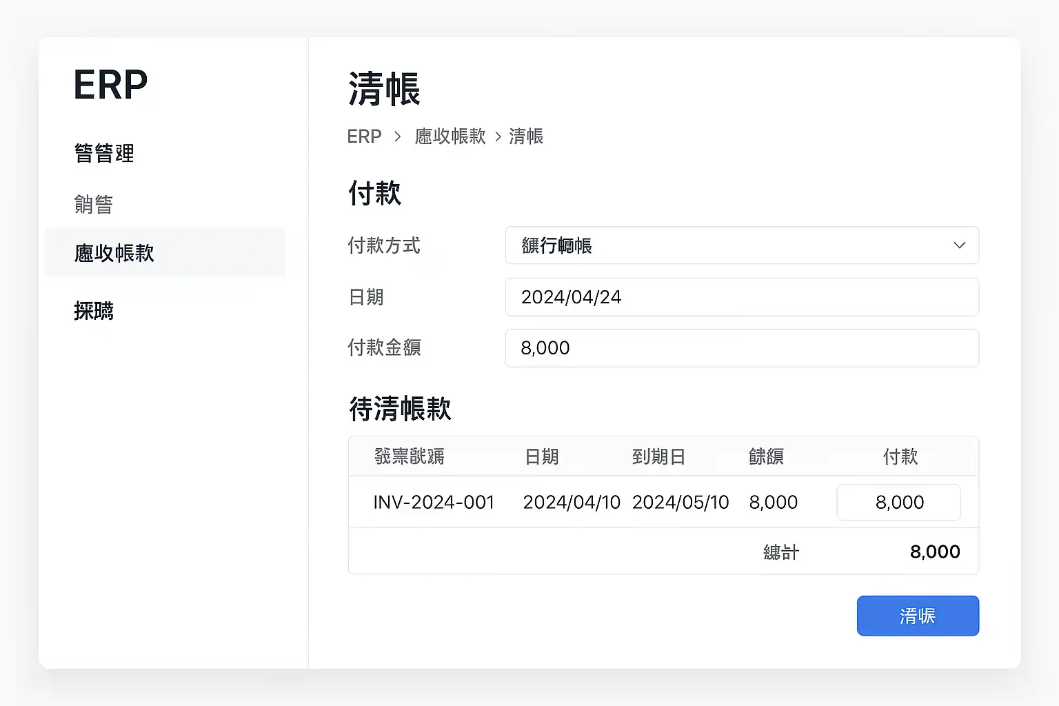 ERP(Enterprise Resource Planning,企业资源计划)系统中的“清账”,通常指期末将所有业务数据进行核对结算,包括应收应付、库存成本、费用分摊等环节,将当期所有业务凭证确认无误后归档,为下一个会计周期做好准备。