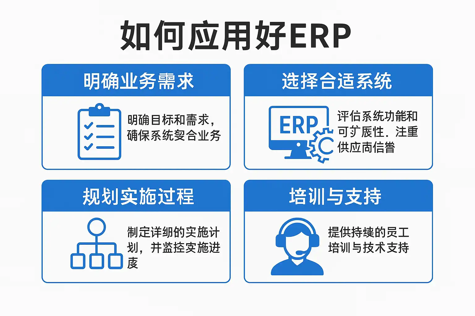 不同类型企业在应用好ERP时会关注不同重点: