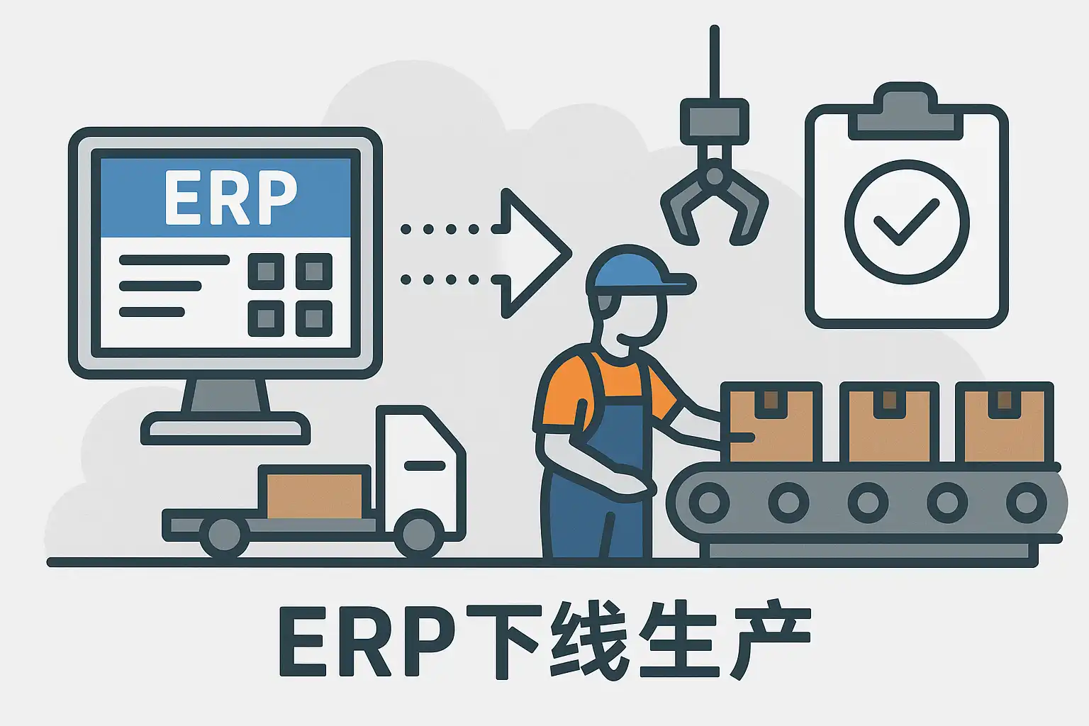 ERP系统中的“下线生产”指的是产品从生产线上正式移交至仓库或下一环节,是从制造到供应链管理的重要节点。其主要流程如下: