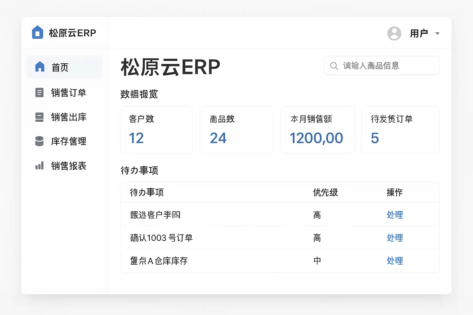 - 库存管理:仓库设置,出入库单据处理,实时库存盘点。
