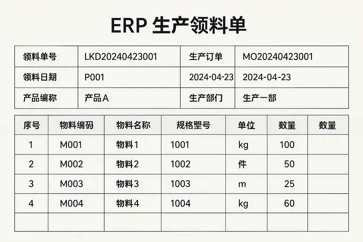 - 打印领料单:供仓库拣货使用,提高作业效率。 案例说明:某制造企业通过ERP系统自动生成领料单后,将制单时间缩短了30%,库存准确率提升至98%。