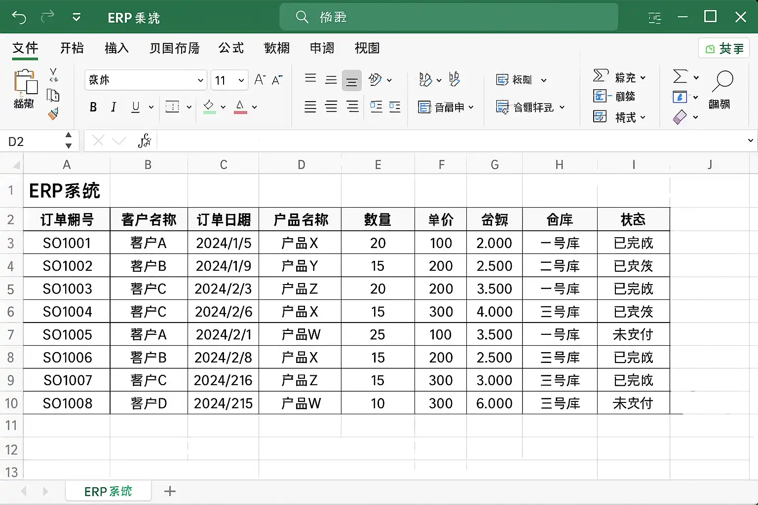 在使用Excel做ERP前,首先需明确所需的核心功能模块。一般而言,中小企业常见ERP需求包括: