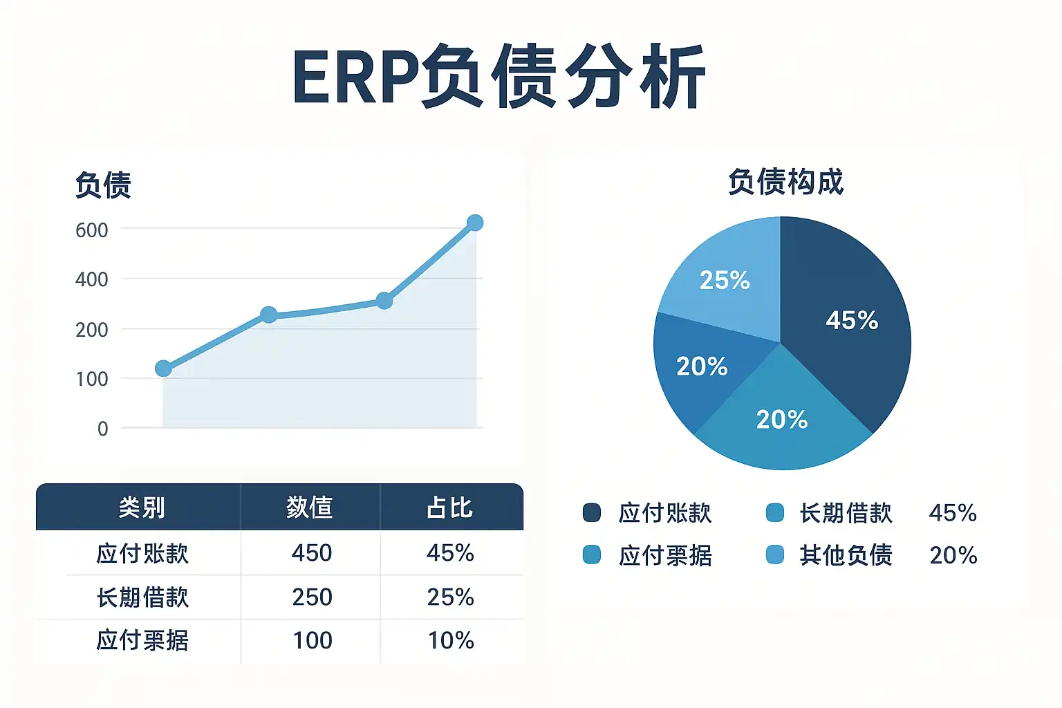 在企业管理中,进行ERP负债分析的方法主要包括:1、数据收集与标准化;2、负债结构分类;3、关键指标计算与监控;4、风险点识别与预警机制建立;5、动态可视化报表分析。 其中,关键指标的计算与监控尤为重要,通过应付账款周转率、资产负债率等财务指标,能够全面了解企业的负债健康状况。例如,应付账款周转率反映了企业偿还短期债务的能力,有助于及时发现潜在的流动性风险。此外,结合ERP系统的数据自动化和报表功能,可以持续跟踪负债变化趋势,使分析更高效、更具前瞻性。