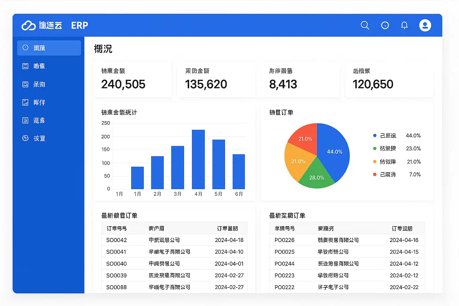 简道云ERP系统涵盖以下核心功能: