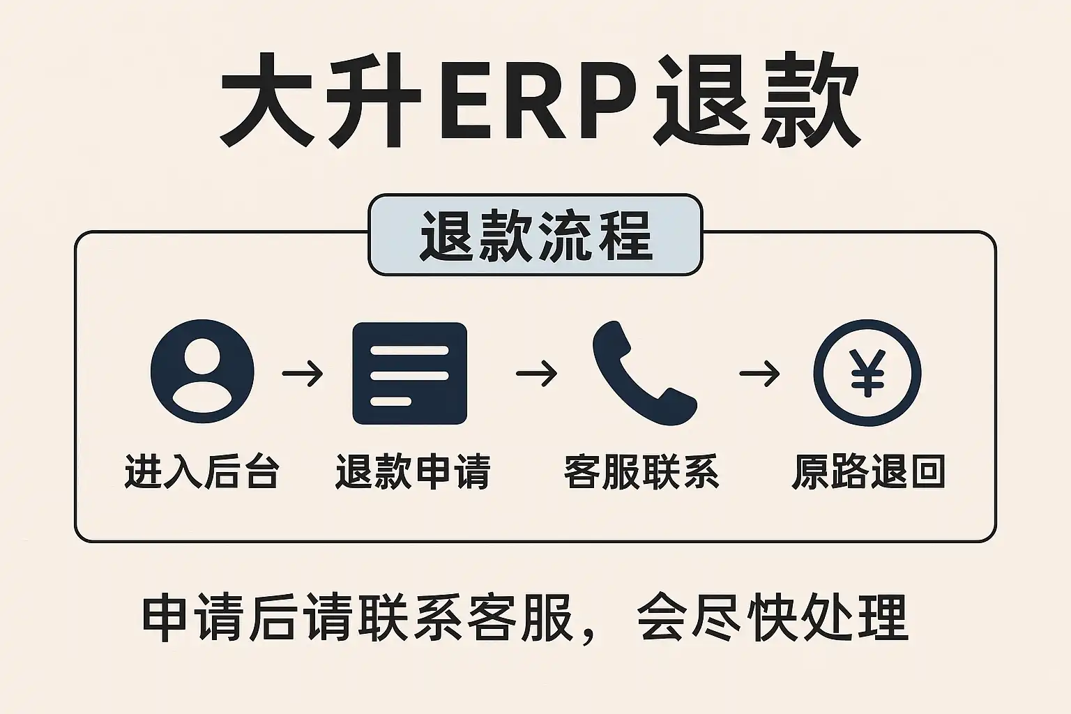 总结 本文全面剖析了“大升erp如何退款”的具体步骤,包括自助申请、平台审核到最终资金到账全过程,并结合实例说明实际应用情境。同时,对比其他主流产品优势,为企业高效安全管理资金提供借鉴。建议企业提前规范内部流程,加强培训,并善用官方技术支持,以保障每一次售后的顺利推进。有任何疑问,可随时咨询官方渠道获取帮助,实现数字化管理价值最大化!