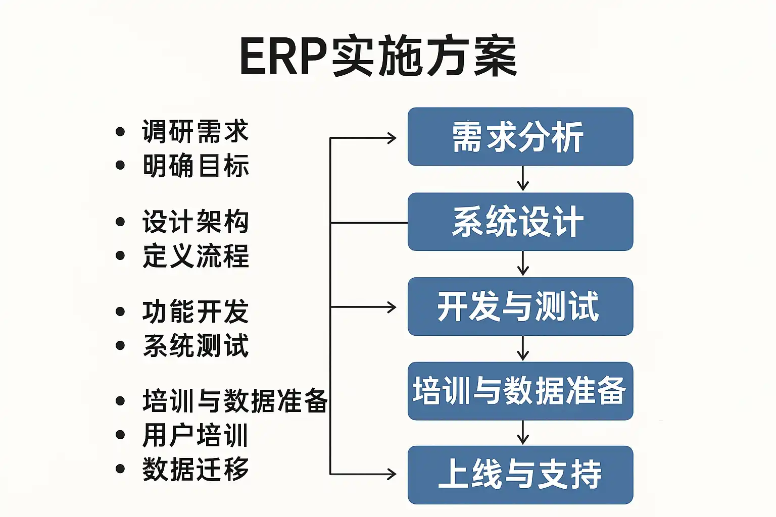 - 用户培训:分层次(管理员/普通用户)开展集中讲解+实操演练;