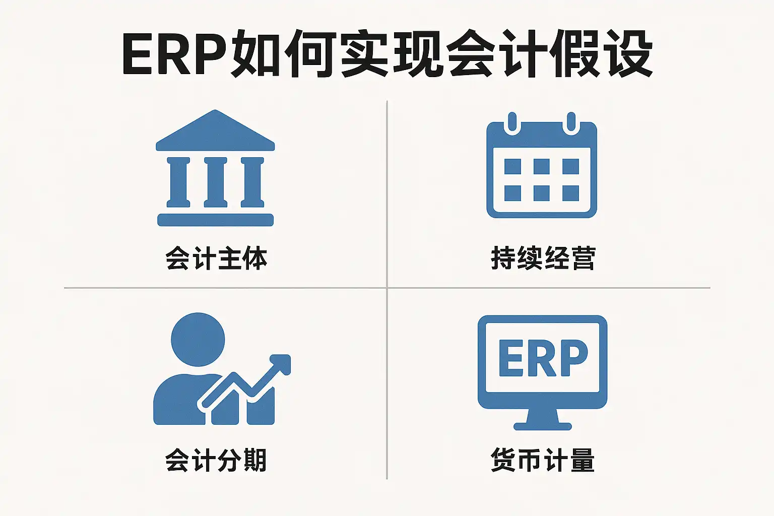 - 持续经营假设:ERP支持长期资产管理和预算控制,确保企业财务数据反映持续运营状态。