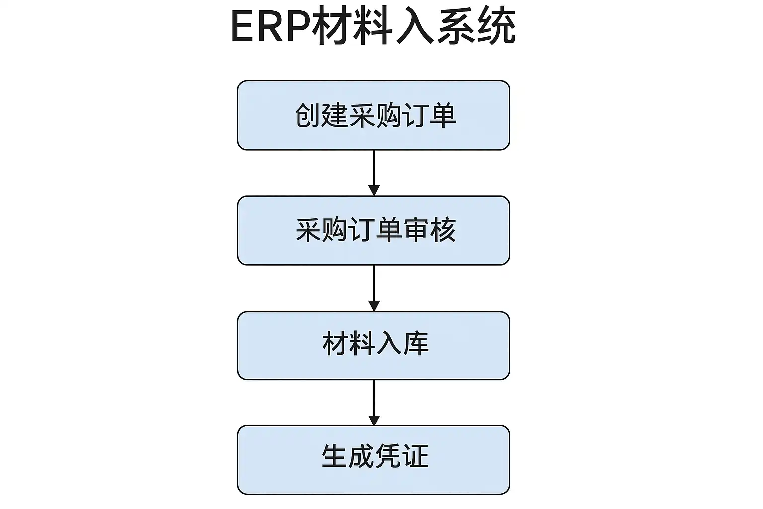 | 4 | 入库单据生成 | 系统自动/手动录入,关联采购订单 |