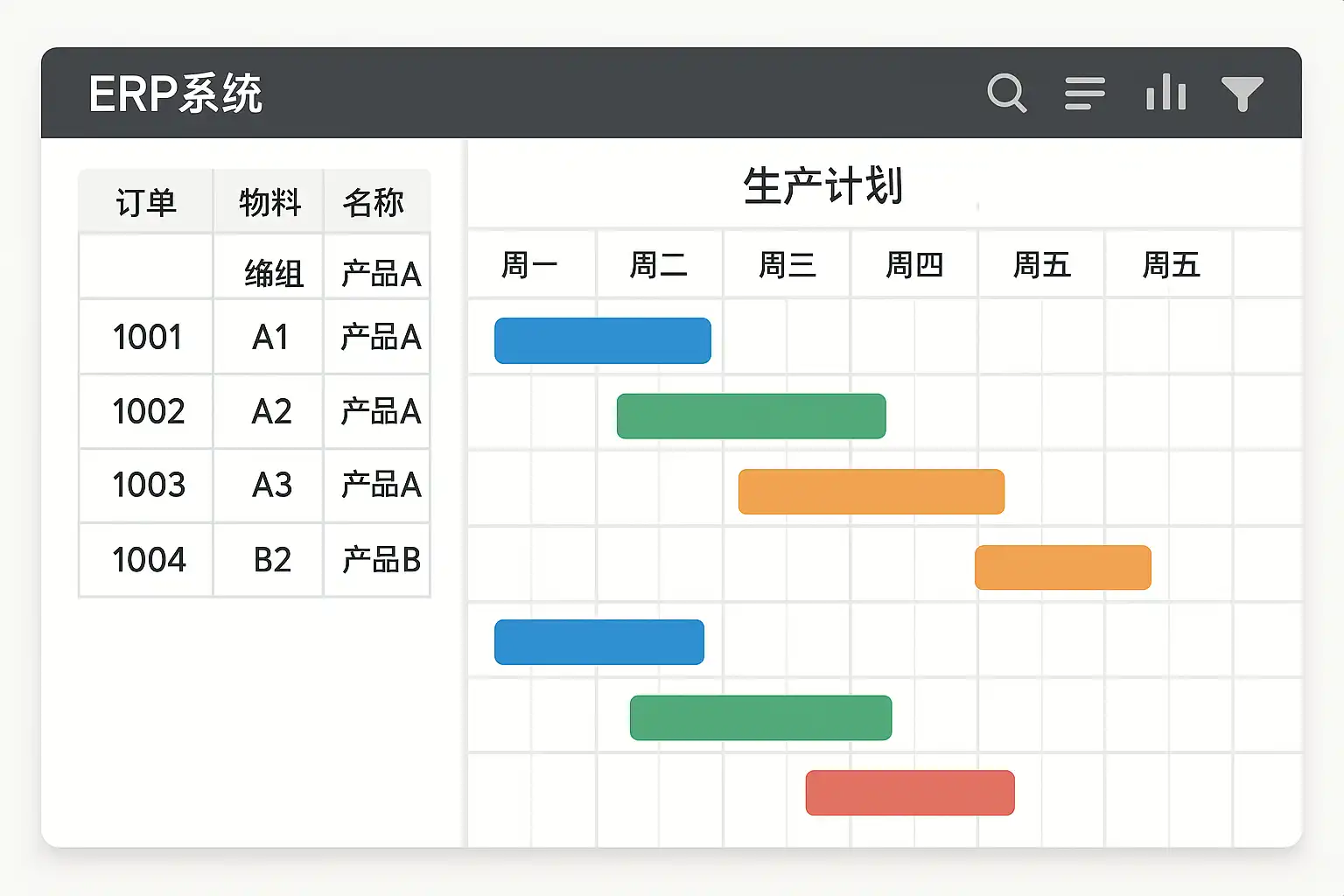 - 自动排程功能:借助ERP自带的自动排程算法(如有限容量计划MRP II),快速生成合理的生产计划。