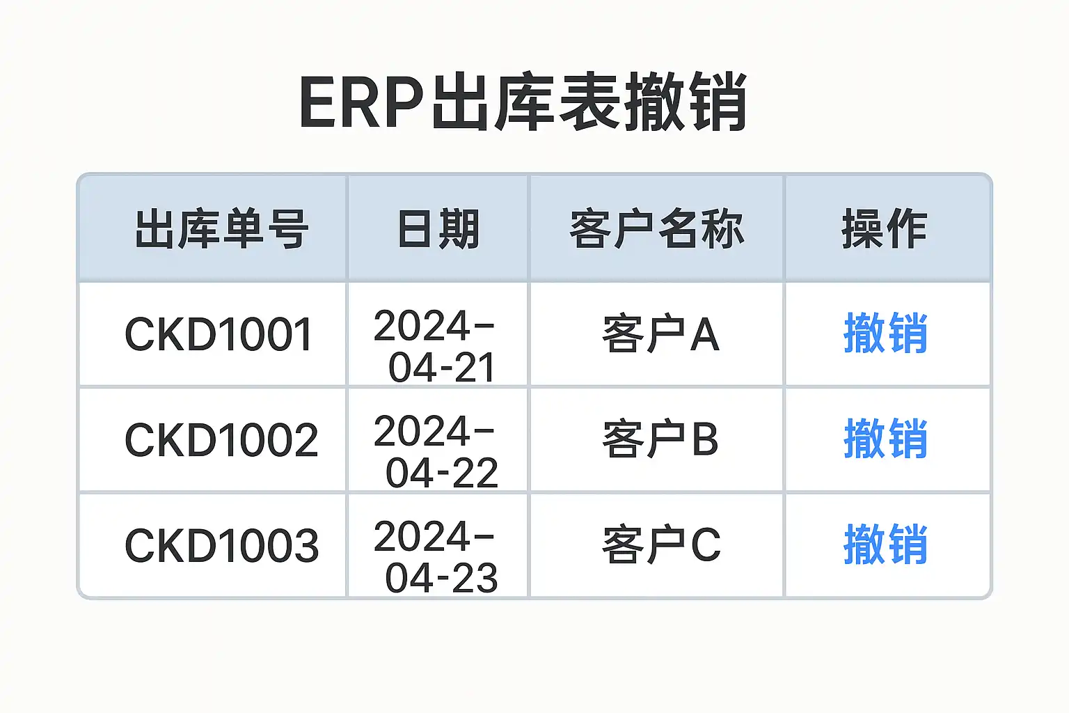 因此,出库表(即出库单)撤销成为一种刚需。其主要目的是保证数据准确性和业务过程合法合规,同时便于后续稽核和责任追溯。