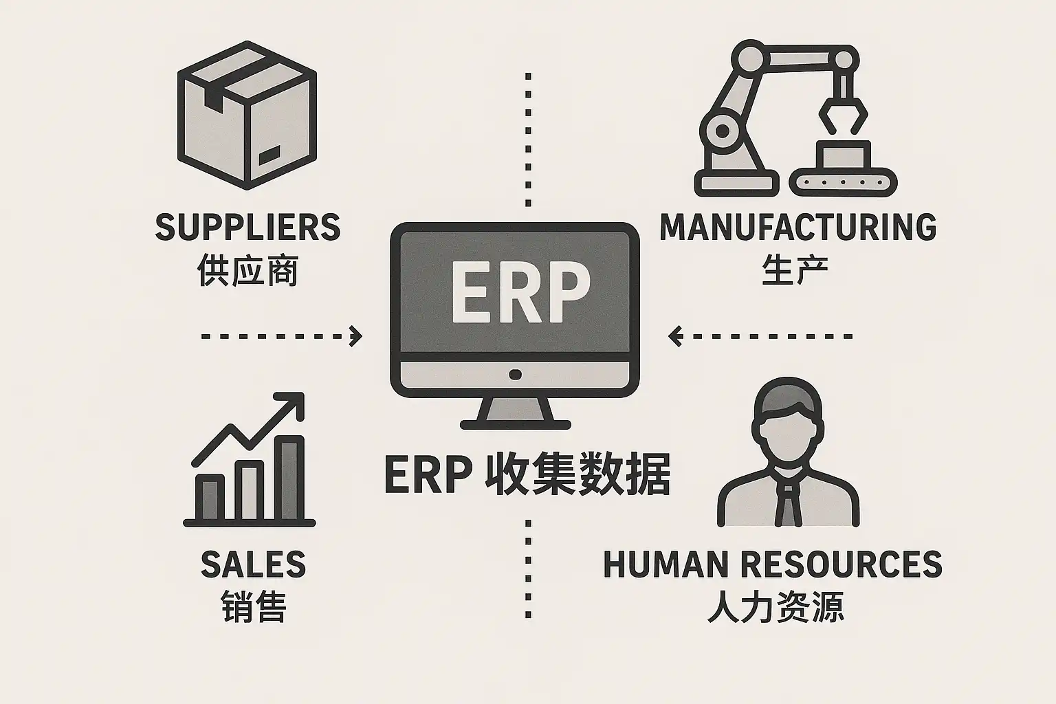 ERP系统支持多种类型的数据收集,包括但不限于: