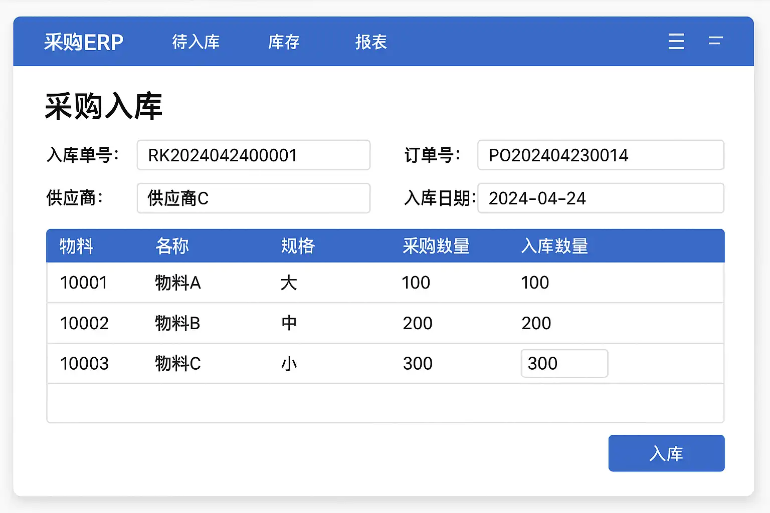 - 系统录入:将实收数量输入系统,更新库存数据。
