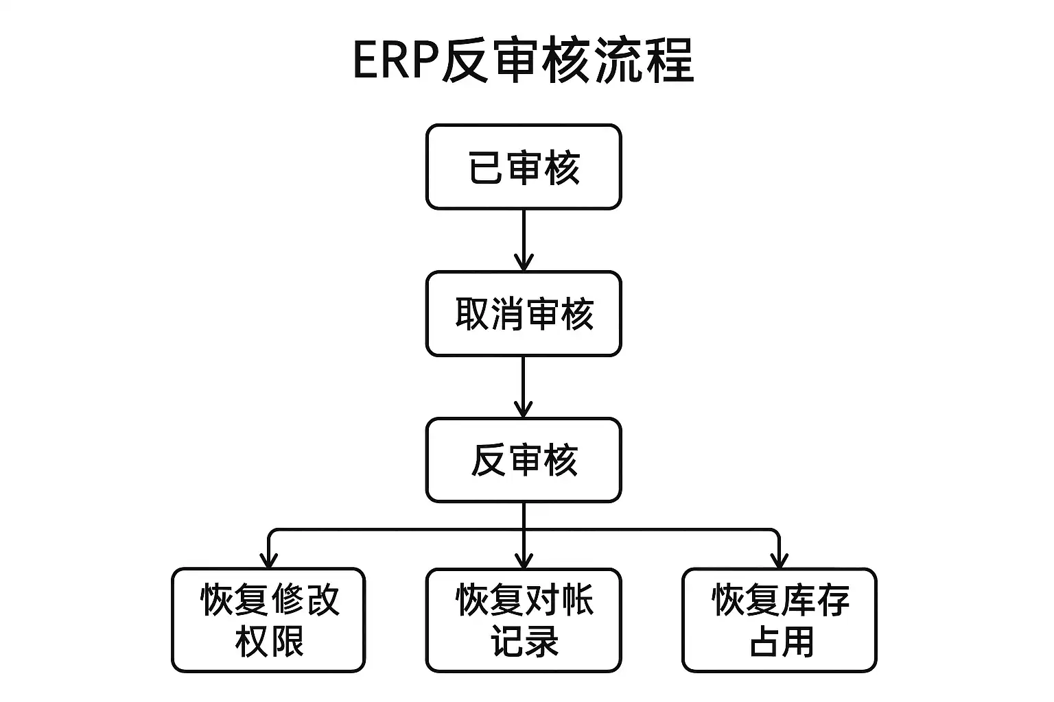 ERP系统中的“反审核”,即取消某张已经被批准或确认(已审核)单据的状态,使其重新回到待处理或未确认的阶段。其主要作用包括: