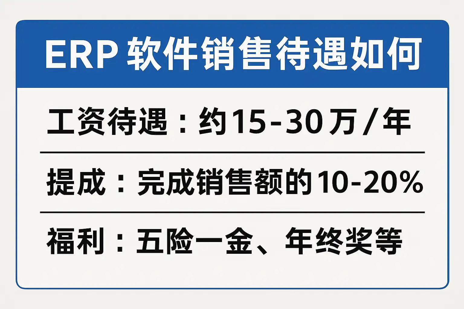 - 业绩提成是收入主力。例如单笔ERP项目成交额数十万至百万以上,高提成让顶级销售年入几十万甚至过百万成为可能。