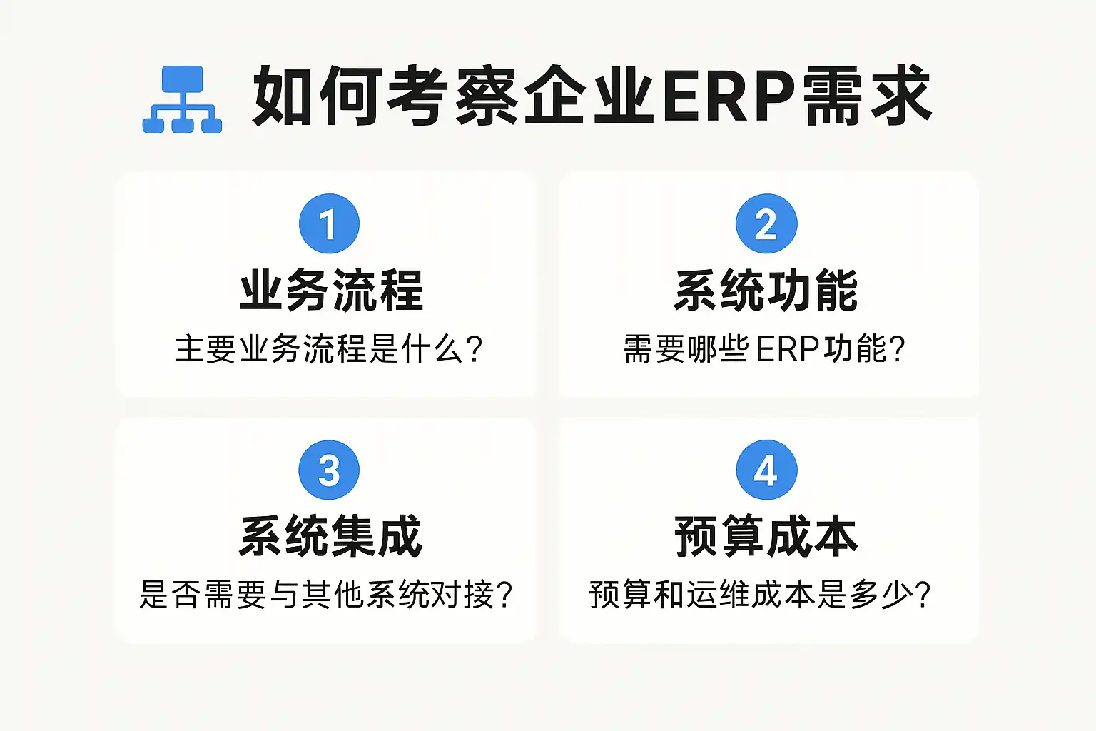 我在考虑给公司引入ERP系统,但不太清楚如何科学评估企业的ERP需求,避免采购后功能不匹配或者浪费资源,我该从哪些方面入手进行需求考察?