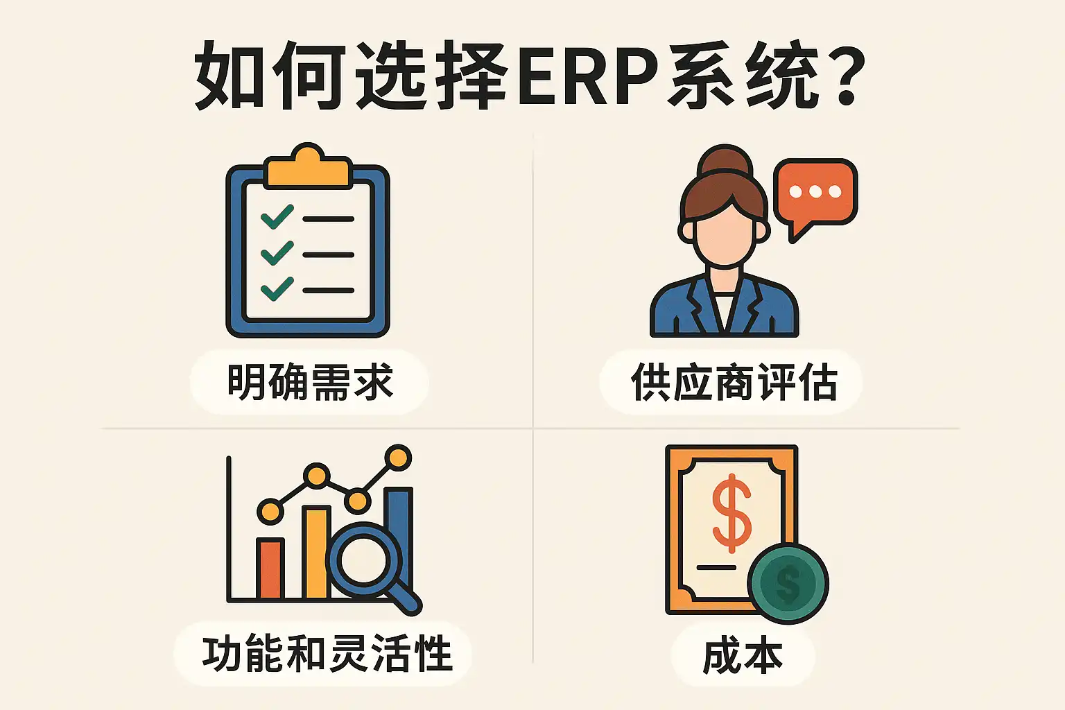 选择ERP系统时,应确保其核心模块与企业实际需求高度契合,同时要考虑未来发展带来的新场景或扩展需要。