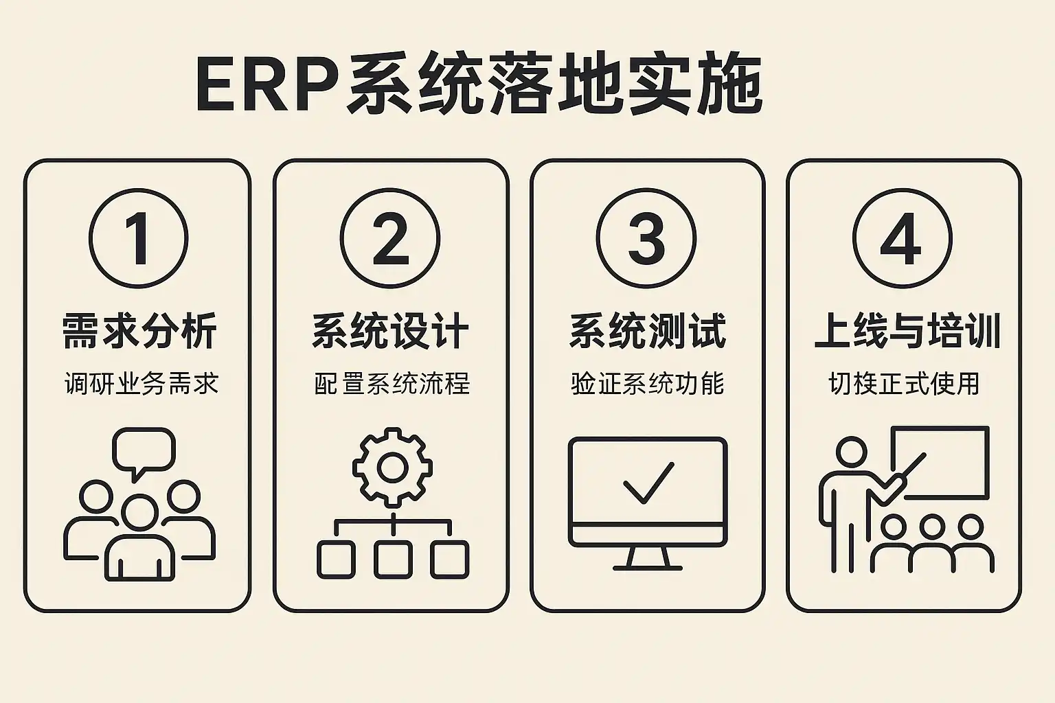 ERP(Enterprise Resource Planning, 企业资源计划)系统作为现代企业信息化和数字化管理的重要工具,其成功落地需要一系列科学且严密的步骤。以下表格总结了主要流程: