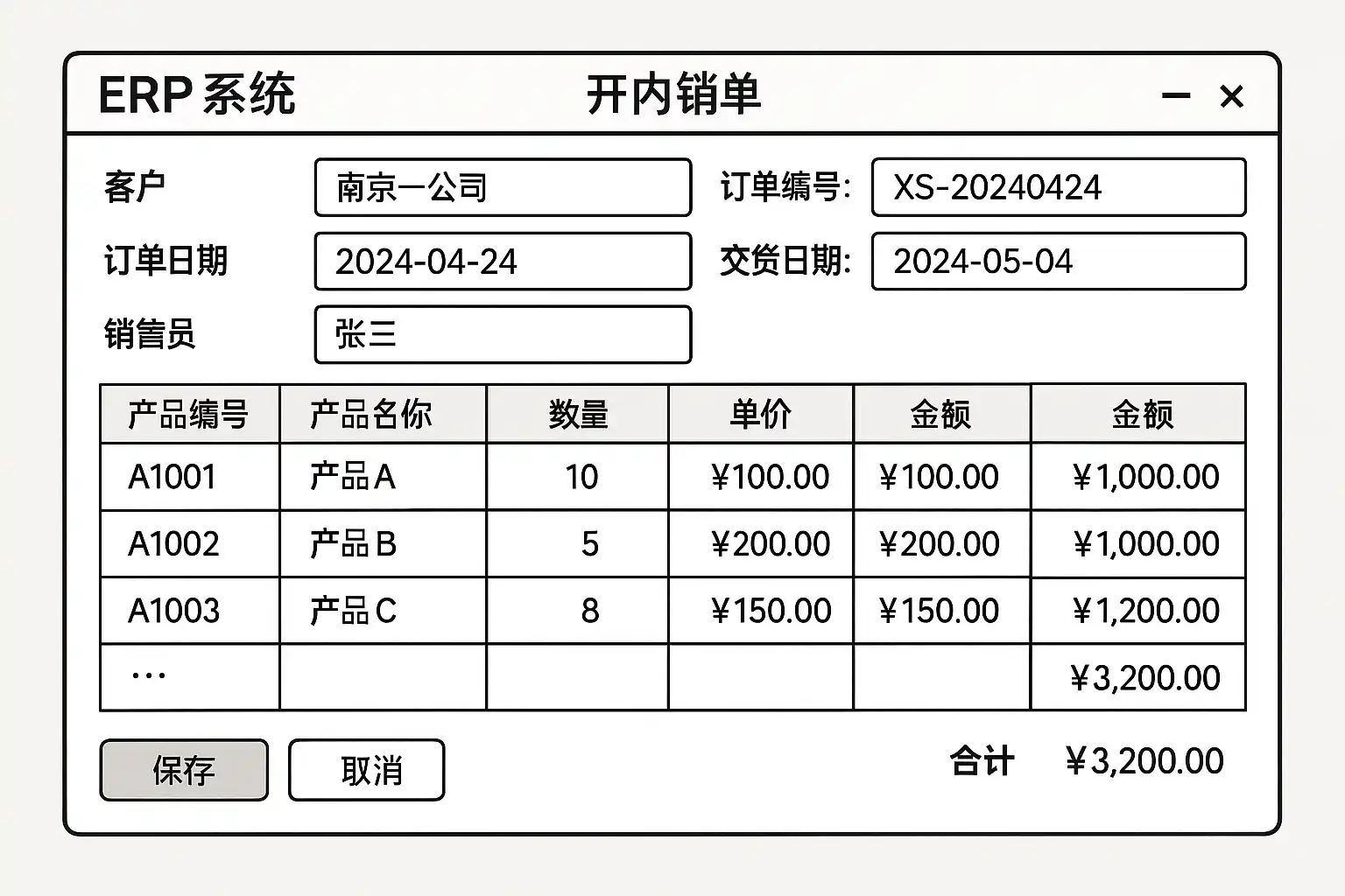 在简道云等主流ERP系统中,开具一张标准的内销单通常经历以下具体环节: