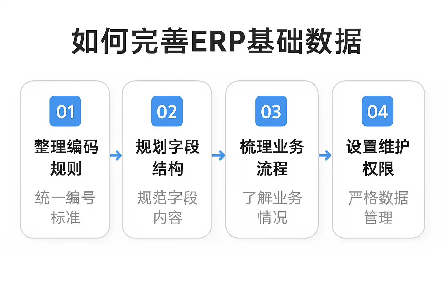 完善ERP基础数据还需特别注意其准确性和时效性,这对生产计划和经营决策至关重要。常见做法如下: