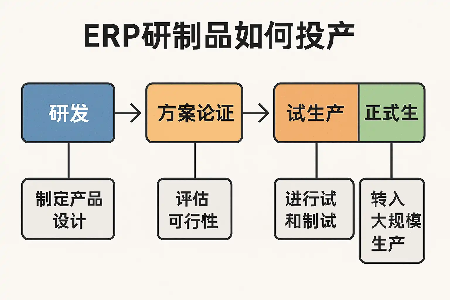 企业将研发阶段的新产品(即“研制品”)转入批量生产之前,需要经历一系列严谨且系统化的步骤。利用ERP(企业资源计划)系统,可以全面管理和追踪以下主要环节: