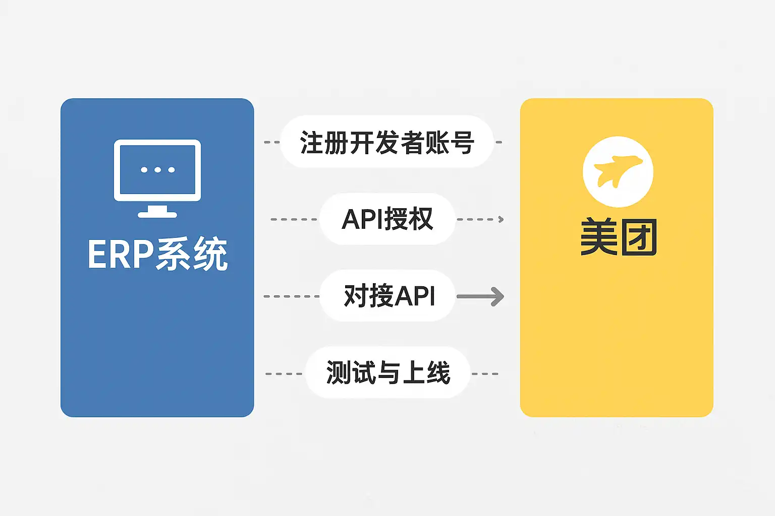 要实现ERP系统与美团平台的订单同步,需通过美团开放平台提供的API接口完成数据对接。具体步骤包括:
