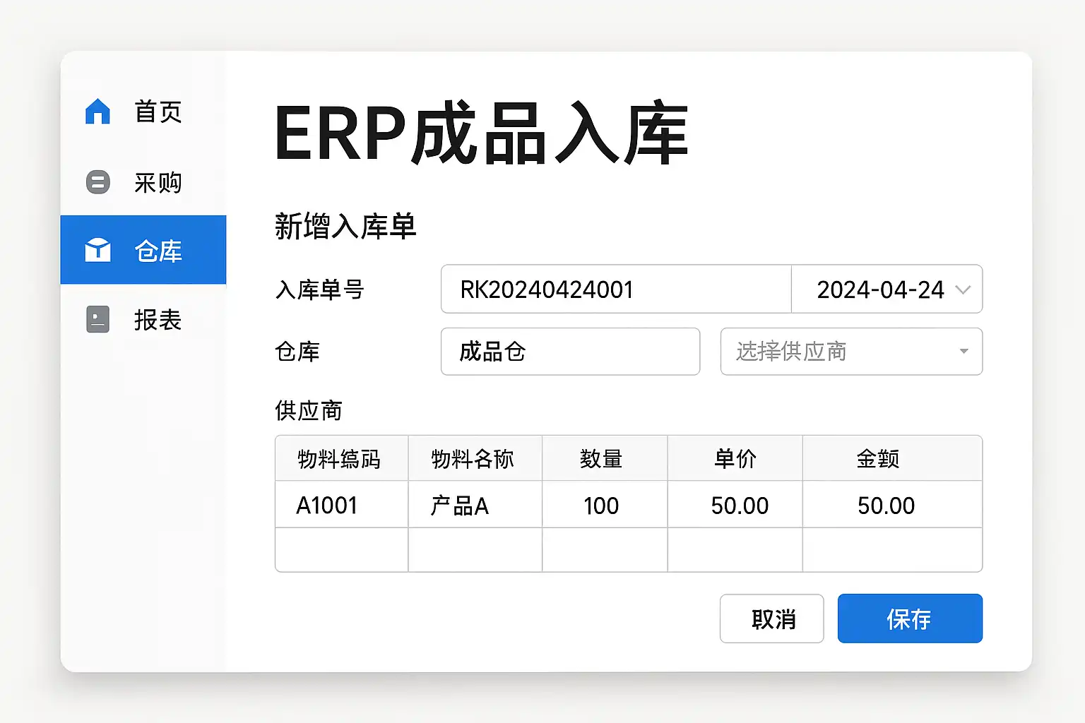主流ERP系统通常提供以下支持成品入库管理的功能: