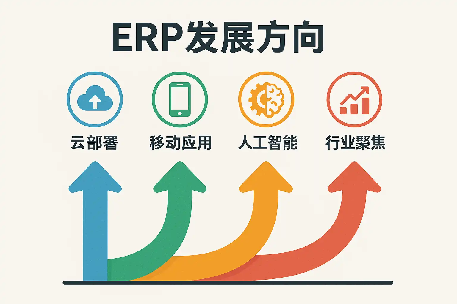 随着数字经济的发展,传统ERP系统面临着适应新业务模式和技术进步的双重压力。未来主要发展方向体现在以下几个方面: