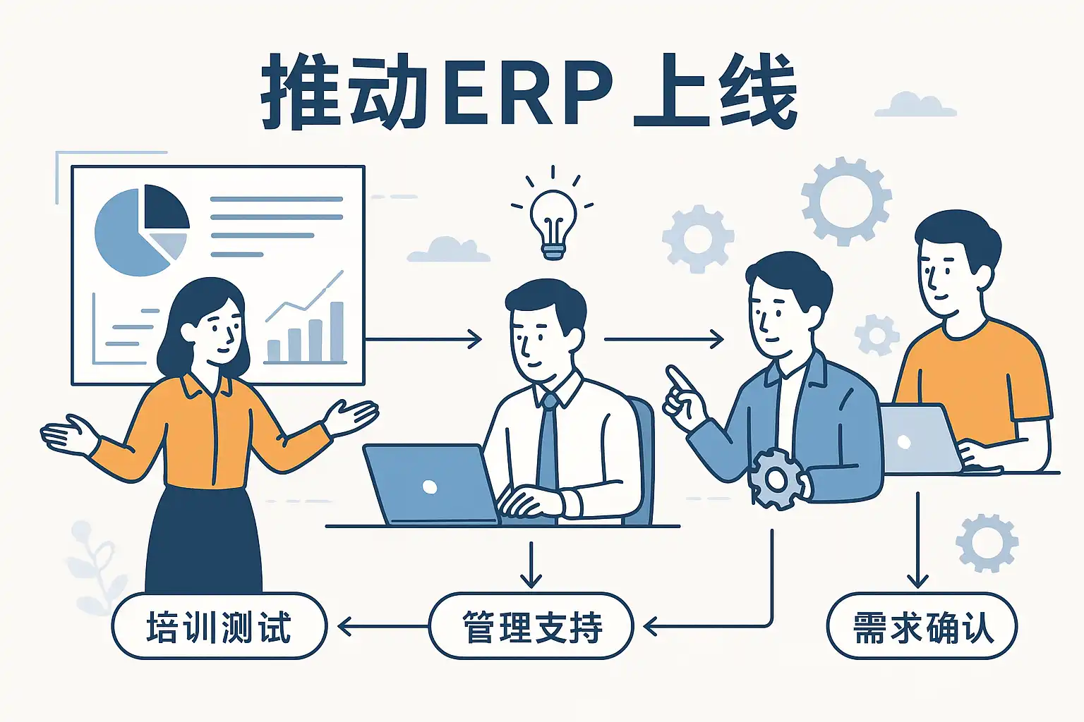 推动ERP上线需要科学规划和多方协同,关键步骤包括: