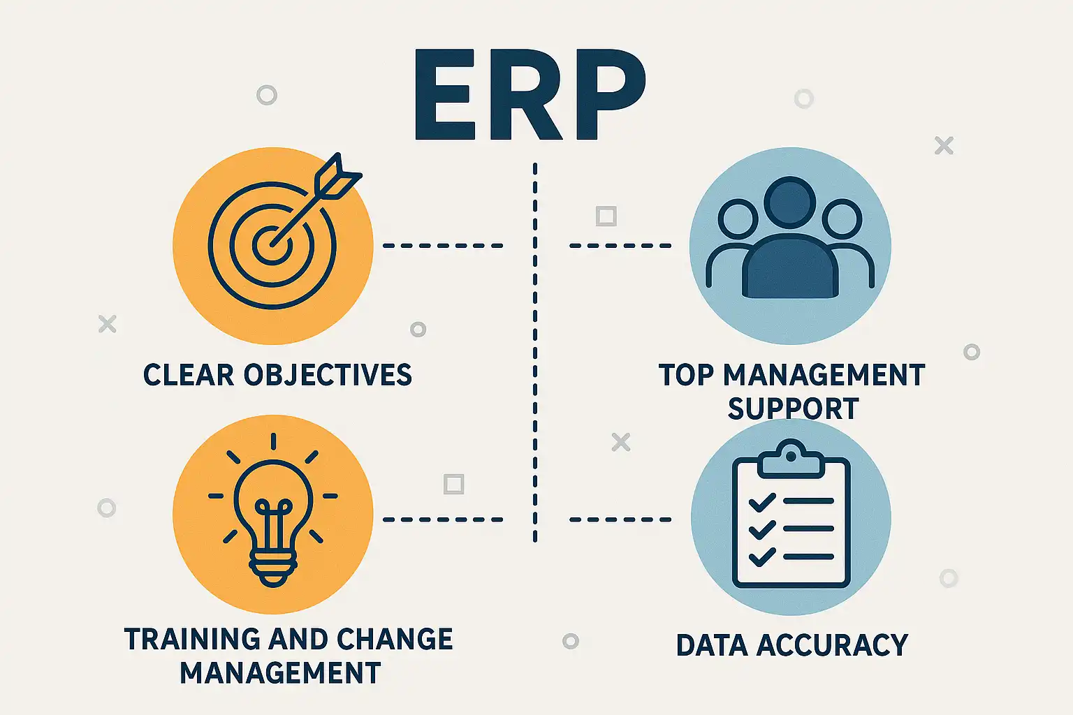 我刚开始接触ERP系统,听说实施ERP很复杂,不知道从哪些关键步骤入手才能保证ERP项目成功?具体有哪些环节是必须要重点关注的?
